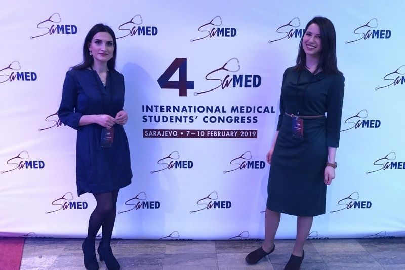 Third-year Sarajevo Medical School students, Dina Neiroukh and Clara Pinherio, have been representing the University SSST at the International Medical Students Congress SAMED (www.samed.ba) with their presentation named ''Viral infections may affect the autoimmune process causing type 1 diabetes'', prepared under the mentorship of professor Mirza Ibrisimovic. "Congresses are a great opportunity to improve ones presenting skills, share network and test oneself, and that is exactly what we did in the 4th year SAMED Congress that was held on the 8th of February. We are proud to say that we presented our topic very well, from the questions and discussions we have received from the audience, which we perceived as a positive feedback, indicating that our work was well understood, delivered properly, and interesting. We would also like to acknowledge professor Ibrisimovic for supporting us when we needed", said Dina and Clara. We congratulate them and wish them many more successful presentations to come!